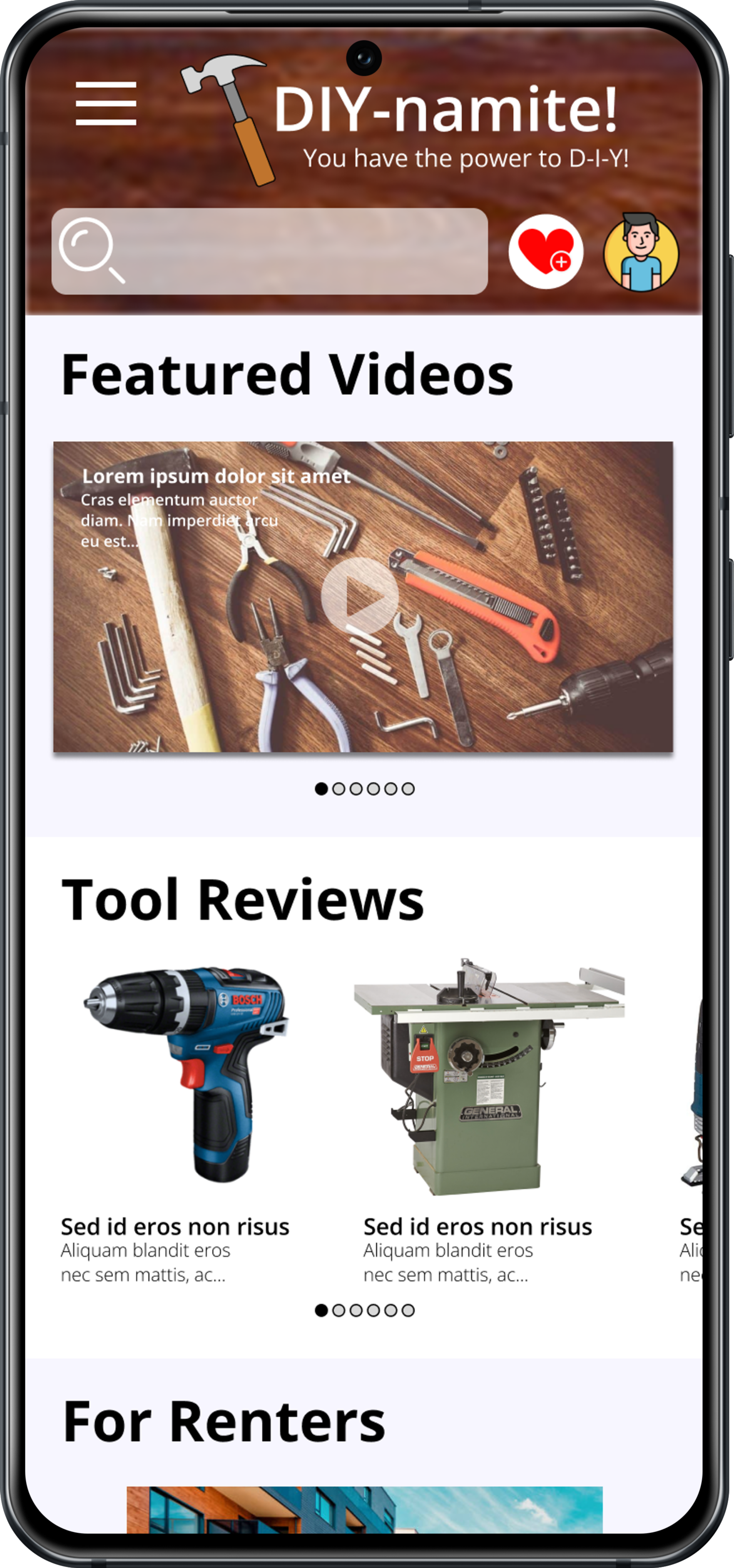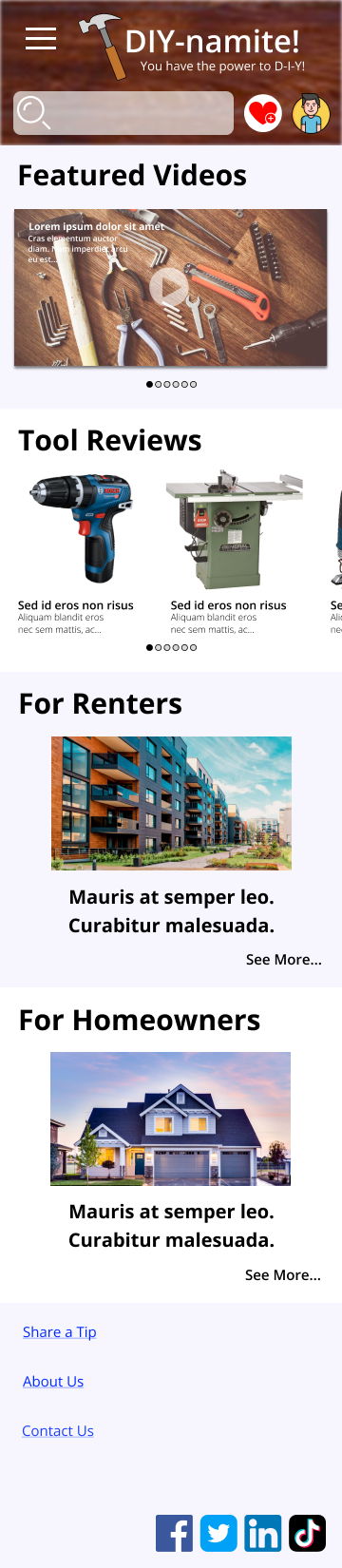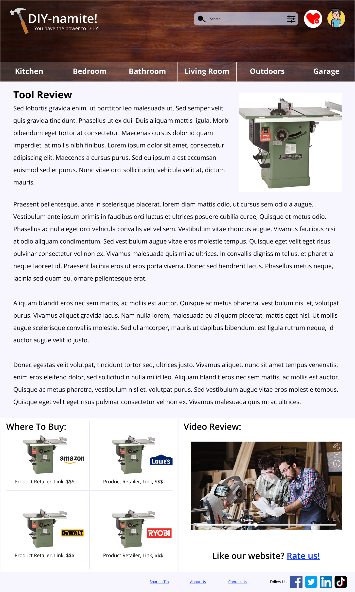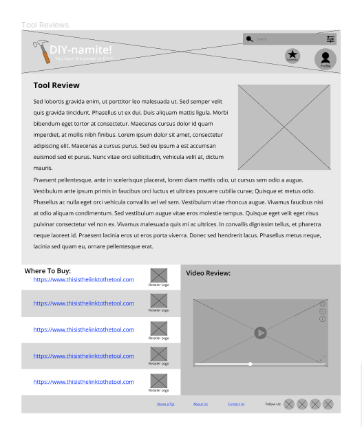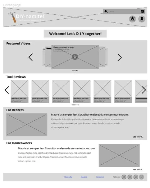 The Solution: Design a responsive website that allows users to search home repair and maintenance tutorials. My DIY-namite! website contains a searchable database of home maintenance tutorials, as well as articles and tool reviews for users wishing to learn DIY home repair. It will be an invaluable tool for users with limited budgets and a desire to be independent.