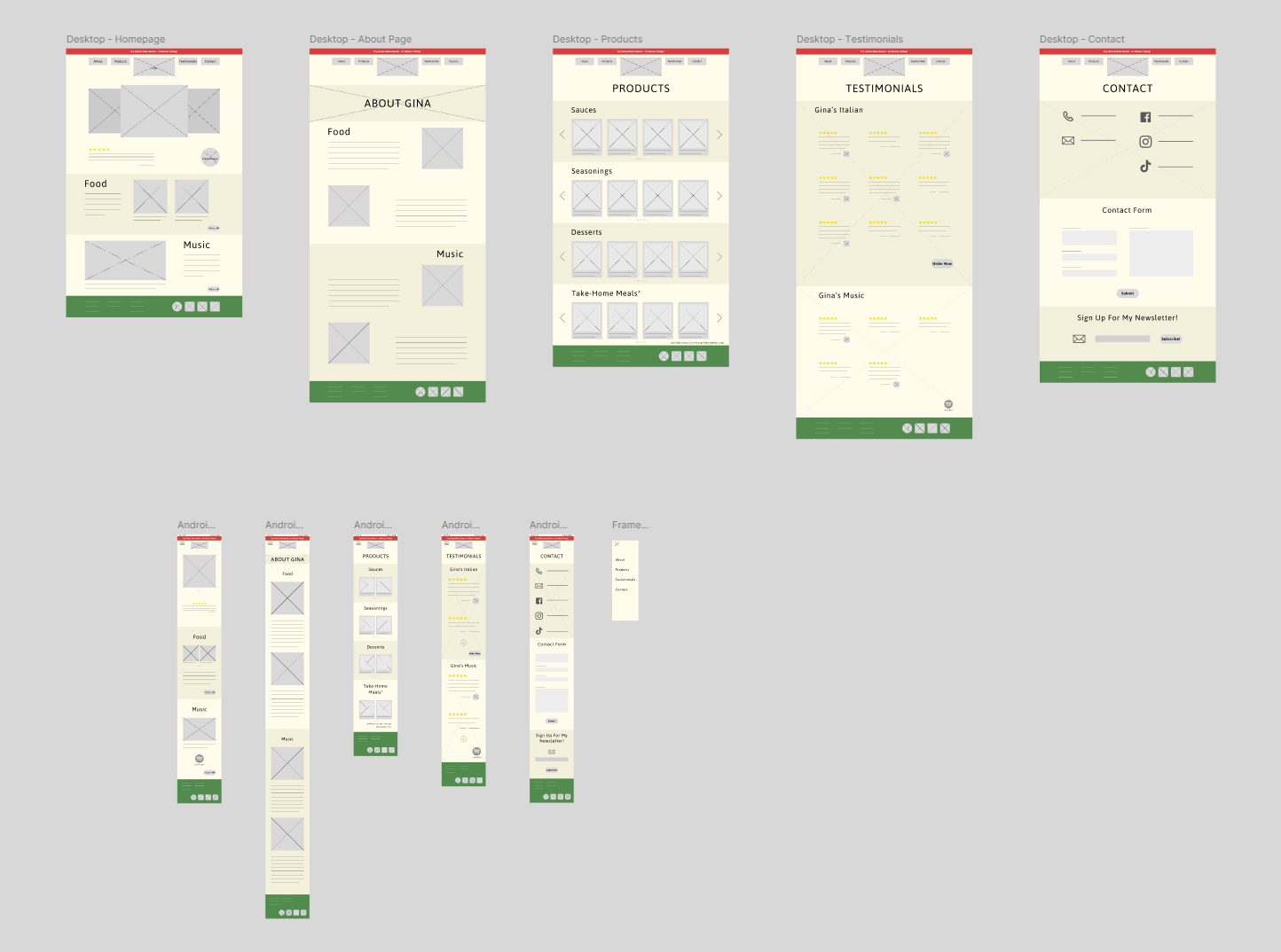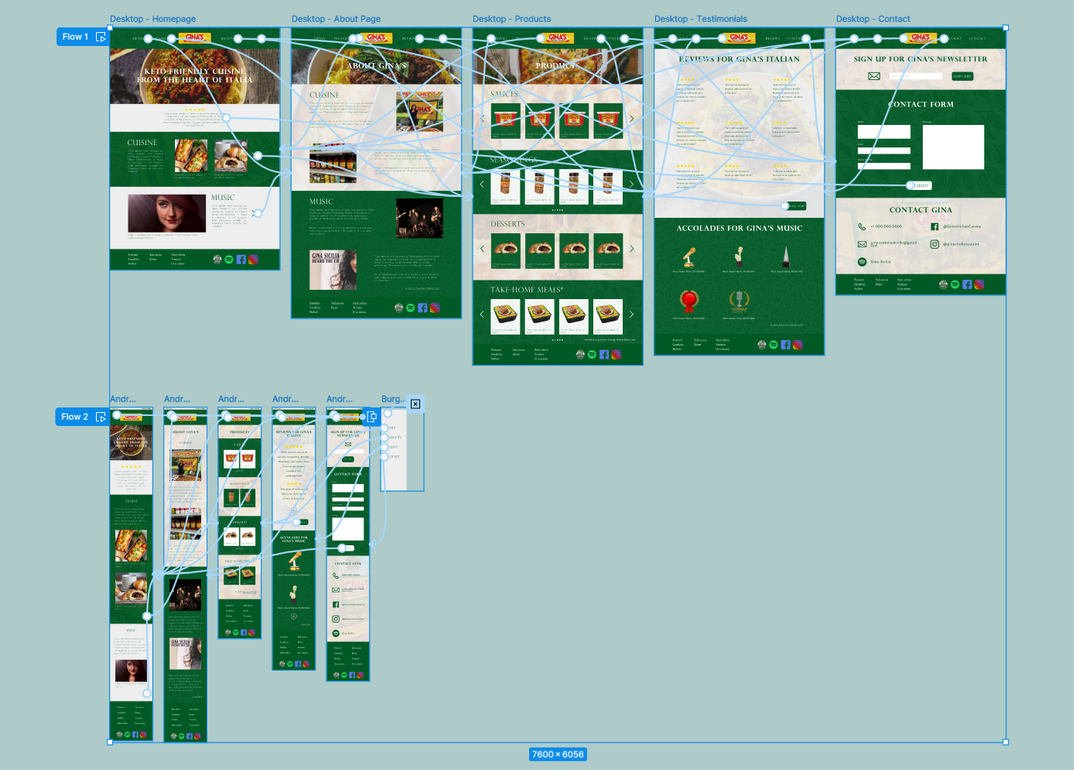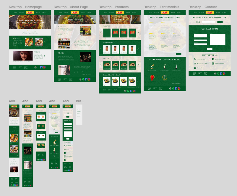 My client wanted a very simple user flow for her website, that perfectly balanced the theme of her music career with catering to followers of her Italian Cuisine. She also asked that I maintain her existing brand in terms of color choices and typography.