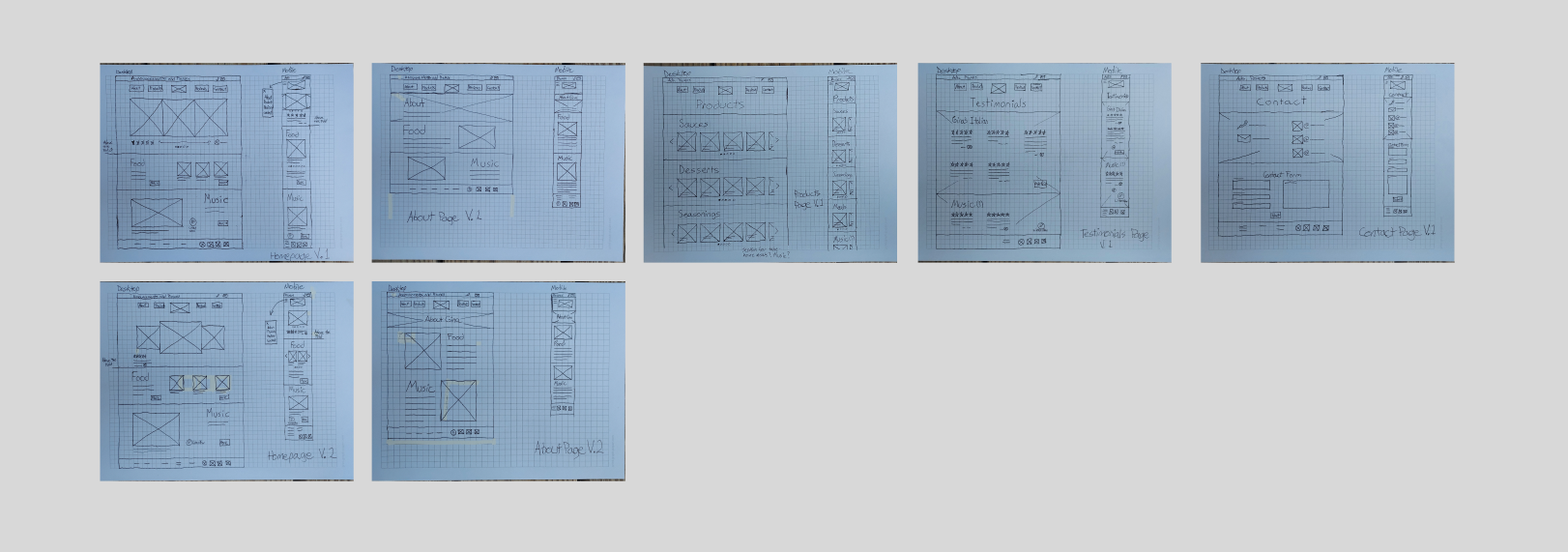 I created my mockups based on the existing color scheme and typography of my client’s existing brand and logo design. I also imported stock photos of her music and cuisine businesses to help the mockup feel as close to the final product as possible. My client was very satisfied and only asked for minor adjustments! I edited based on her requests and finalized the prototype.